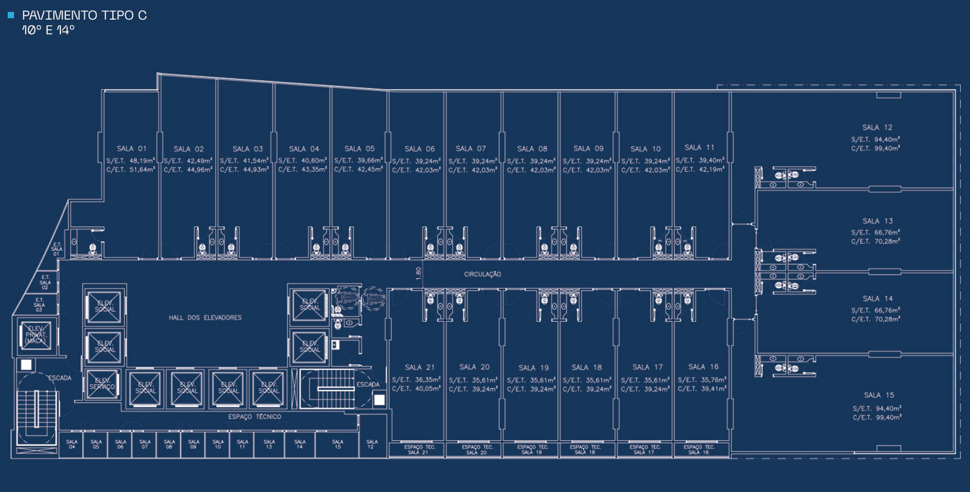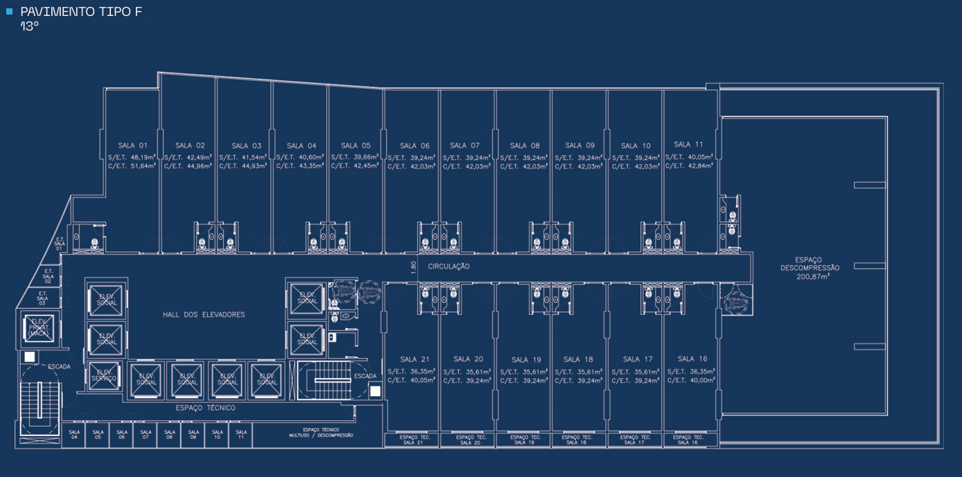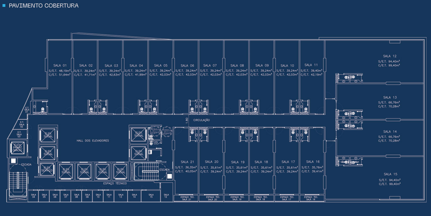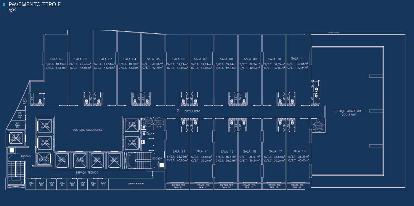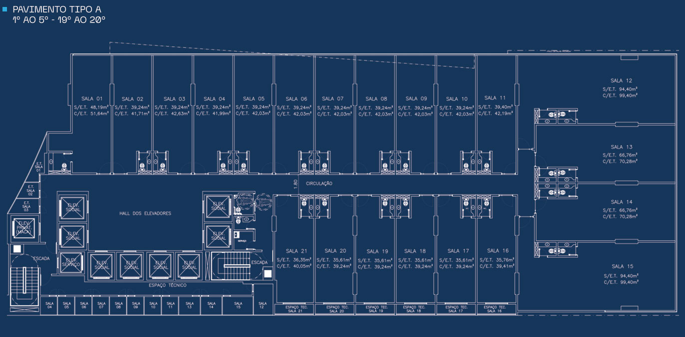 . Banheiros em cada pavimento